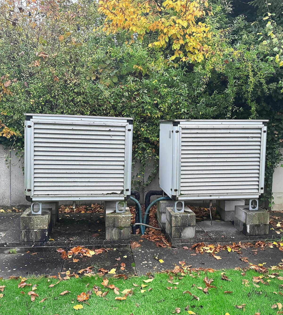 Alte Heizungslösung: Zwei aussen aufgestellte Luft-Wasser-Wärmepumpen (Leistung je 26 Kilowatt) für Raumwärme. Solarthermieanlage mit dachmontierten Kollektoren und Speicher (Volumen 800 Liter), Übertragung der Wärme vom «Solarboiler» auf einen konventionellen Warmwasserspeicher mit Elektroheizeinsatz (Volumen 500 Liter).