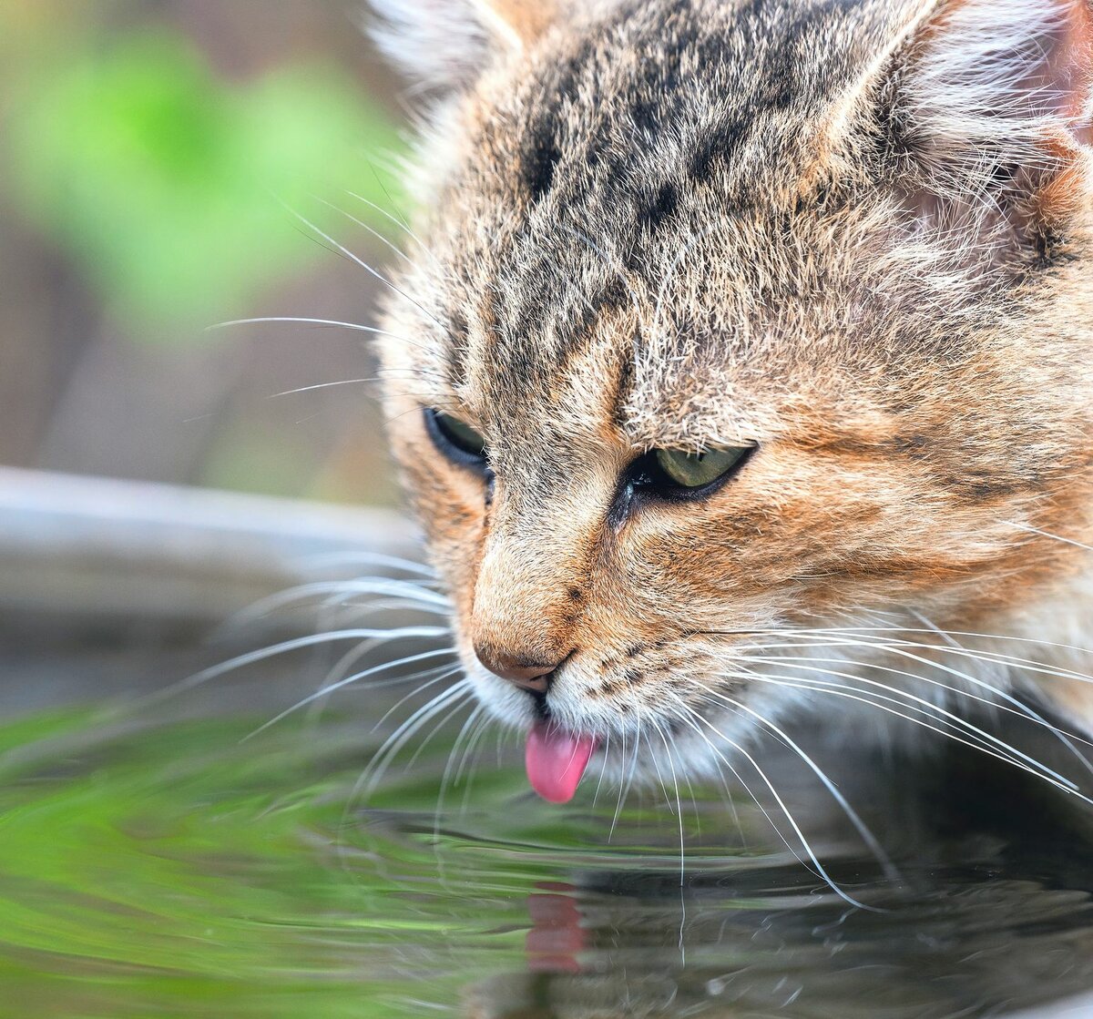 Zusätzlich sorgen sichere und saubere Wasserstellen an sonnigen Tagen dafür, dass die Tiere genügend Flüssigkeit zur Verfügung haben. Dies ist umso bedeutender an sommerlichen Hitzetagen. Hierfür kann eine flache, sichere und saubere Wasserstelle sowohl dekorativ als auch erfrischend sein. Aus hygienischen Gründen sollte das Wasser der Trinkstellen täglich gewechselt werden. Bei Brunnenanlagen ist zirkulierendes Wasser notwendig, das mit einer Filteranlage ausgerüstet ist. Besteht zusätzlich ein Wasseranschluss im Garten, können vor allem Hunde nach einem ausgiebigen Spaziergang in erdigem Gelände schnell und unkompliziert gereinigt werden, ohne dass die Innenräume in Mitleidenschaft gezogen werden.