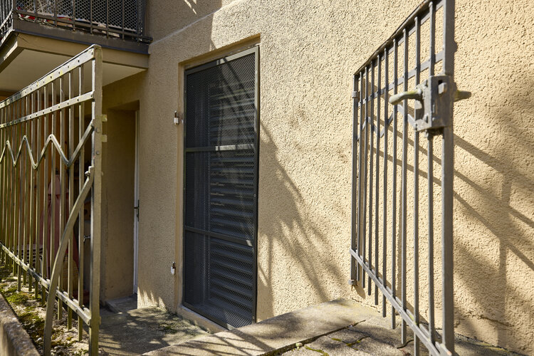 Dieses Vorhaben gelang am Russenweg. Bei der Begehung der Liegenschaft stiess man auf ein in der Ostfassade integriertes Kämmerchen, das seit der Bauzeit bestand. Gedacht war es für die Lagerung von Gartenwerkzeug. «Diese Tür konnten wir entfernen und in der Aussenwand einen Durchbruch erstellen. So erhielten wir die erste notwendige Öffnung, diejenige für das Ausblasen der Luft», erläutert Frederik Brun. Über dem robusten Wetterschutzgitter wurde ein zweites, feineres Gitter montiert. Beide sind schwarz lackiert und fügen sich deshalb unauffällig in die unveränderte Fassade ein.