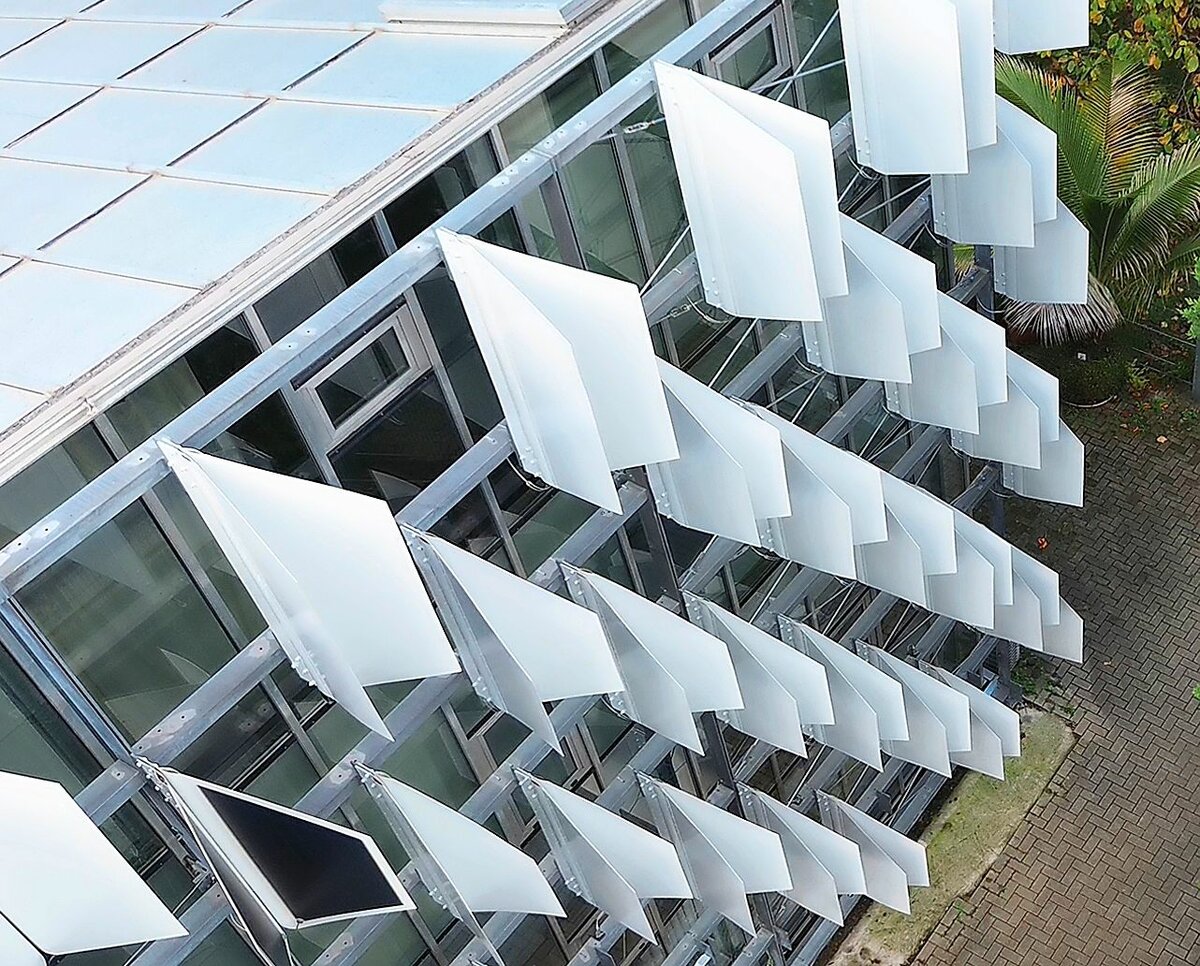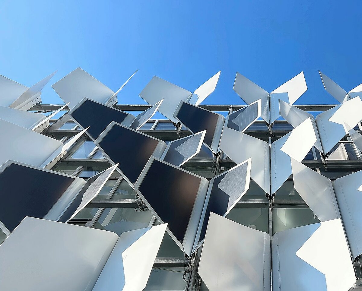 Durch die kontinuierliche Analyse von Echtzeit- und Prognosedaten berechnet das System den optimalen Öffnungswinkel der Panels und sorgt für ein ausgewogenes Verhältnis zwischen Komfort, Energieeffizienz und erneuerbarer Energie.