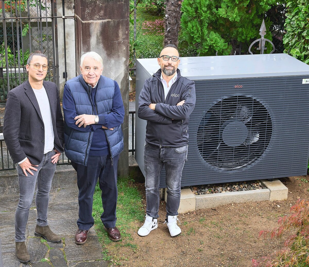 Deshalb wandte sich Carmelino Borelli an seinen Elco-Verkaufsberater Alessandro Poete und erkundigte sich nach den Sanierungsmöglichkeiten. Alessandro Poete, nach vielen Jahren als Elco-Servicetechniker bestens mit der Technik vertraut, zog Installateur Davide Righetti von der Branca Filli Branca SA (Mendrisio) bei. «Wir haben verschiedene Varianten geprüft, so etwa Erdsonden-Wärmepumpen sowie innen oder aussen aufgestellte Luft-Wasser-Wärmepumpen», berichtet Davide Righetti. In die engere Auswahl kam auch die Aerotop SPK20, die neueste und stärkste Propan-Wärmepumpe aus dem Elco-Sortiment. Sie bringt eine Heizleistung von bis zu 20 Kilowatt. Zum Vergleich: Bei vielen modernen Einfamilienhäusern reicht eine Leistung zwischen 8 und 12 Kilowatt. Für ältere Bauten wie die Casa Borelli, die mit Hochtemperatur-Heizkörpern ausgerüstet sind, ist hingegen mehr Power nötig.