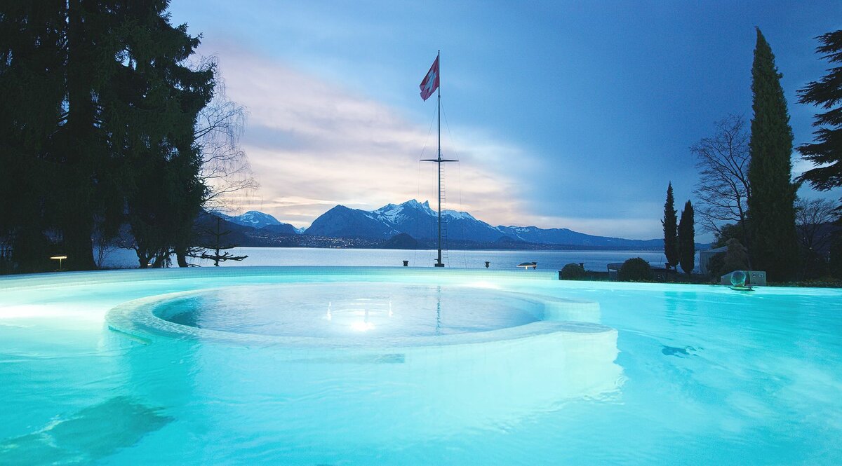 Auf 2000 Quadratmetern lädt die luxuriöse Wasser- und Saunawelt zum Entspannen und Träumen ein: Geniessen Sie das Panorama-Solbad mit Blick auf den See, wärmen Sie sich in der finnischen Blockhaussauna bei 90 °C auf und tanken Sie bei einer revitalisierenden Massage neue Energie. Erleben Sie die unvergleichliche Kulisse des Thunersees und die sanfte Wärme, die zu 100 % aus seiner natürlichen Energiequelle gewonnen wird. Abgerundet wird Ihr Aufenthalt durch kulinarische Höhepunkte und saisonale Gaumenfreuden.