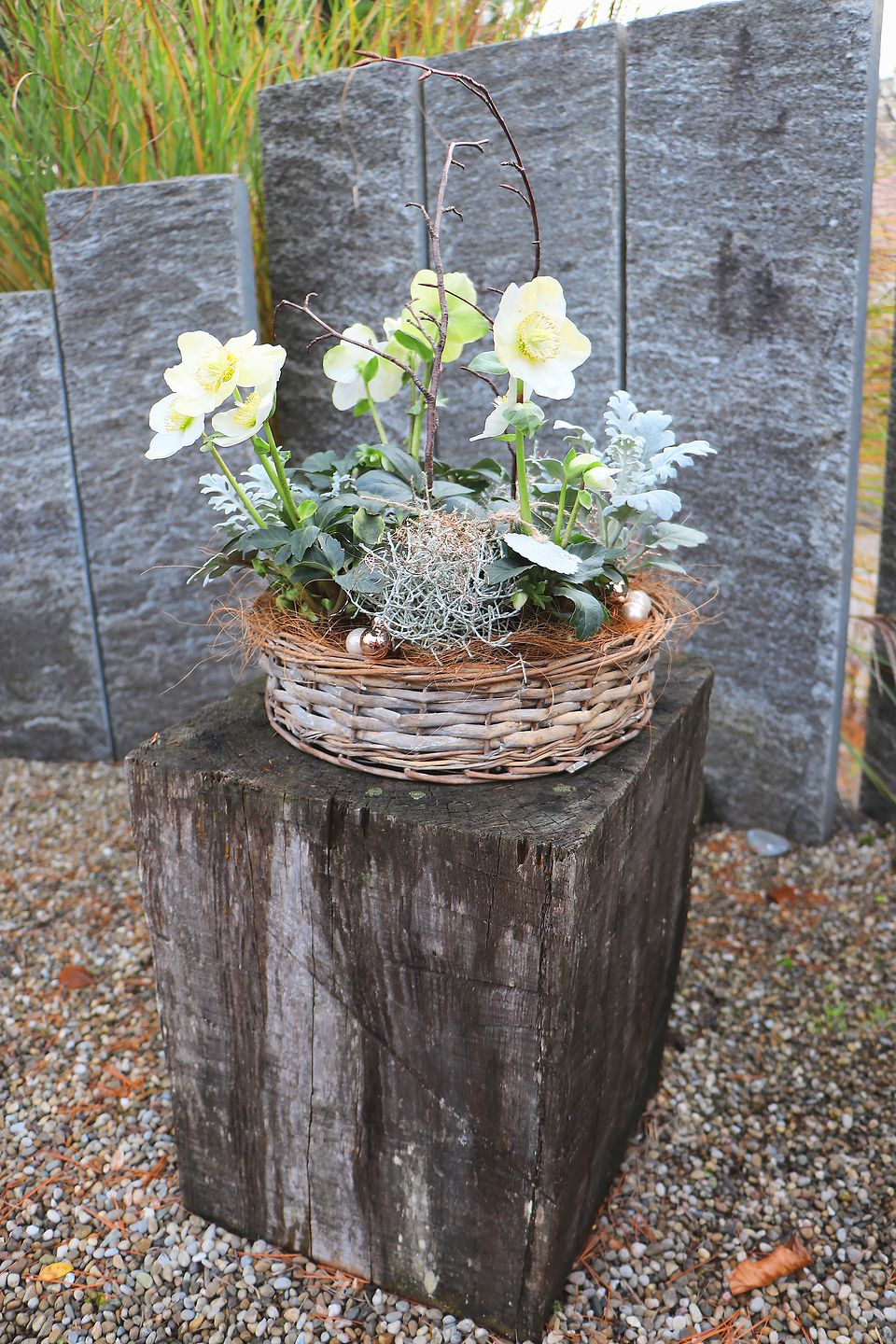 Marlene Winkler: Ich bin Fan von natürlichen Materialien, die sich im Wald oder im Garten finden lassen. Im Wald gibt es viele schöne Zapfen, Äste und verschiedene Nadelbäume. Diese duften zudem sehr gut in Innenräumen. Auch Nielen (Waldrebe) und Birkenäste finde ich toll, um schöne, wilde Kränze zu binden. Dies funktioniert sogar ohne Draht, indem man sie einfach ineinander flechtet. Im Herbst kann man aus dem Garten Hortensien schneiden und mit ihnen wunderschöne Kränze binden. Sie trocknen sehr gut ein und behalten in Innenräumen ihre Farbe. Von den Hortensien gibt es viele unterschiedliche Sorten, sie lassen sich in Töpfen halten oder auch einpflanzen. Christrosen in verschiedenen Farben blühen von November bis März. In Töpfen oder auch direkt in die Erde gepflanzt, können wir uns jedes Jahr über neue Blüten freuen. Sie eignen sich zudem sehr gut, um in weihnachtlichen Pflanzgefässen zur Geltung zu kommen. Auch Eukalyptus ist in Kränzen und Gestecken immer sehr beliebt. Bereits ohne weitere Deko macht er mit seinen schönen Blättern extrem viel her. Mittlerweile gibt es winterharte Sorten für den Garten, die erst noch fein duften.