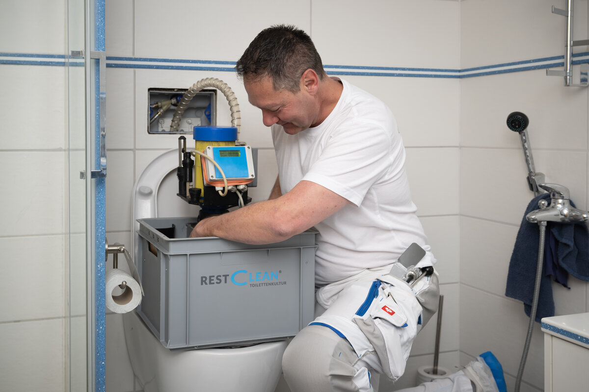 Die Firma RESTCLEAN, für die Roger Keusch seit bald drei Jahren arbeitet, wird gerufen, wenn die Spülleistung nachlässt, sich Kalk und Ablagerungen festsetzen oder eine WC-Anlage nicht mehr zuverlässig funktioniert. Damit kann oft ein Ersatz der Toilette verhindert werden, was viel Geld spart und schonend für die Umwelt ist.