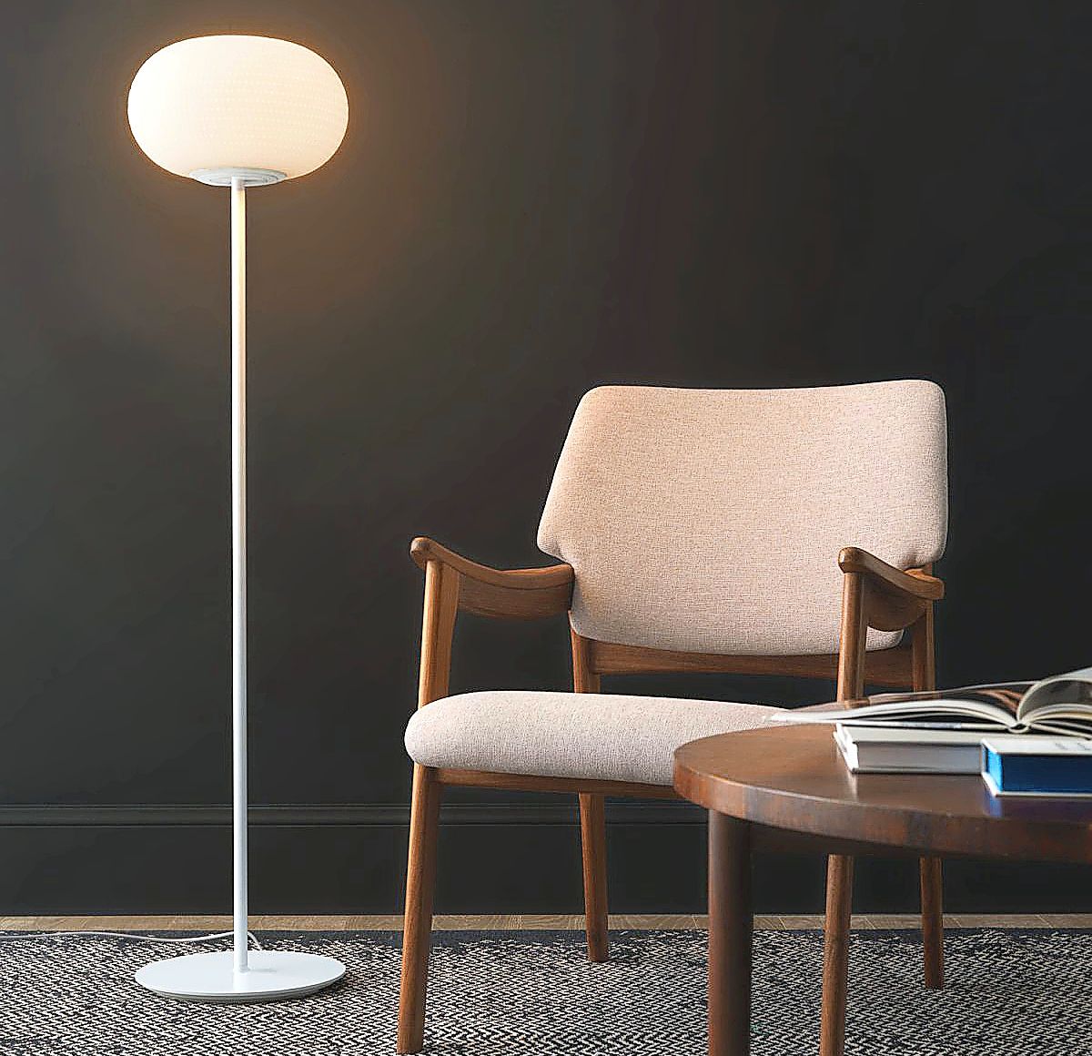 Es braucht dazu nicht gleich eine radikale Neugestaltung des Interieurs. Viel schöner ist es, wenn man die Trendfarbe dosiert einsetzt und nach besonderen Stücken sucht. Besonders geeignet sind Leuchten: die Stehleuchten Bianca von Fontana Arte (7) oder Concert von Fritz Hansen (6), ebenso Tischleuchten wie Panthella von Louis Poulsen (5), Arum von Ferm Living oder Jazz von Vibia (3). Sehr schön wirkt auch die Tischleute Earth der Marke Serax – handmodelliert aus Pappmaché und eine gelungene Verbindung von traditionellem Handwerk und zeitgenössischem Design.