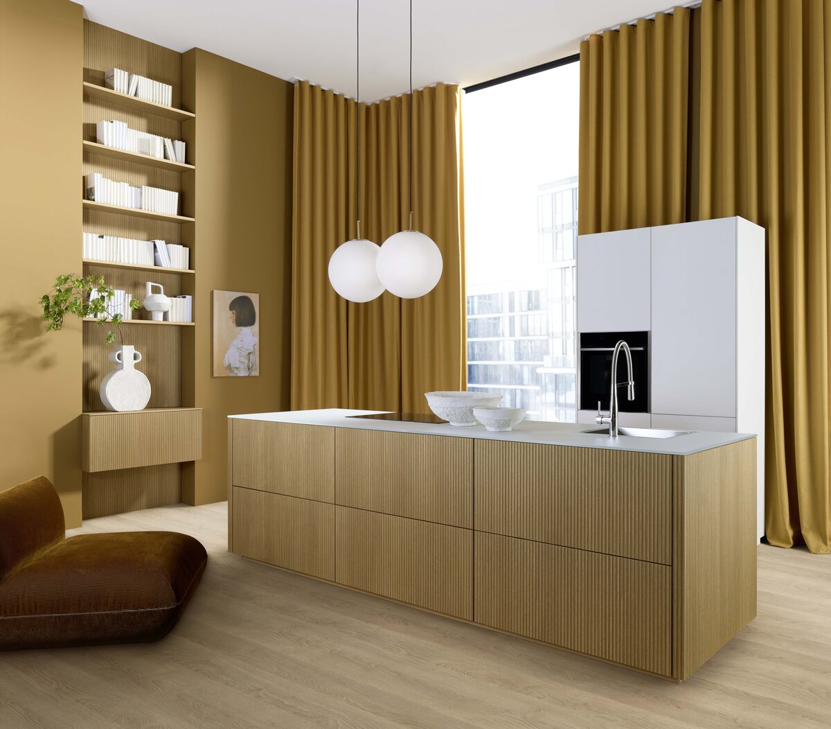 Auch griffloses Design ist möglich: Mit MatrixArt ONE und MatrixZERO bietet nolteneo elegante Lösungen. MatrixArt ONE kombiniert eine durchgehende Griffleiste unter der Arbeitsplatte mit Push-to-open-Technik, während MatrixZERO vollständig auf sichtbare Griffe verzichtet.