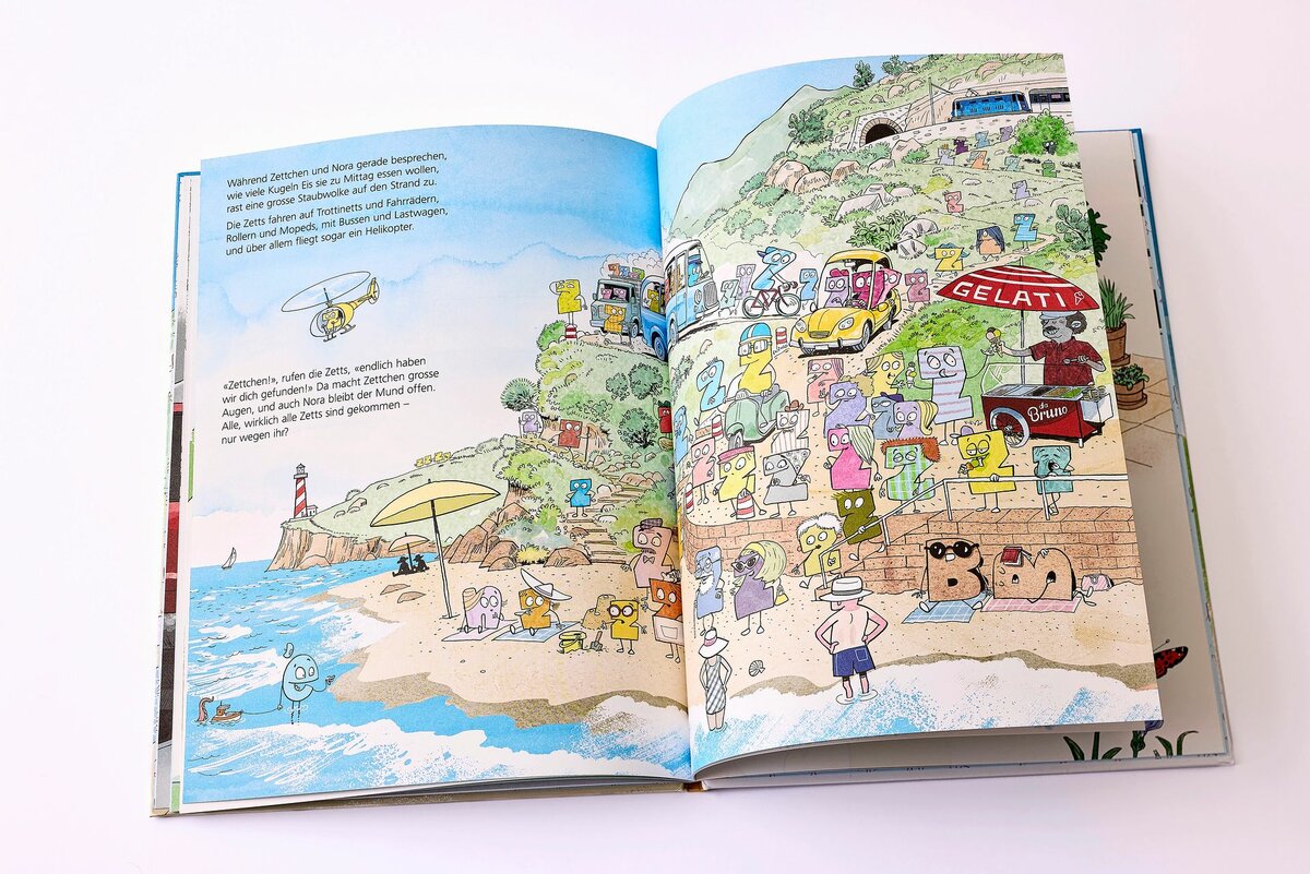 «Zettchens Abenteuer. Reise ans Meer» erzählt die Geschichte des kleinen Buchstabenmädchens Zettchen, das am Tag der Schulreise versehentlich in den falschen Zug steigt und allein ans Meer fährt. Während Zettchen fröhlich und unbesorgt am Strand spielt, machen sich ihre Familie und alle anderen Z-Buchstaben auf, sie zu suchen – mit Zügen, Autos, Velos und mehr.