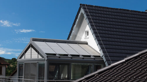 Aluminium-Rollläden von Schanz sorgen für mehr Wohnkomfort im Wintergarten. So wird der gläserne Rückzugsort ganzjährig zur geschützten Wohlfühloase.