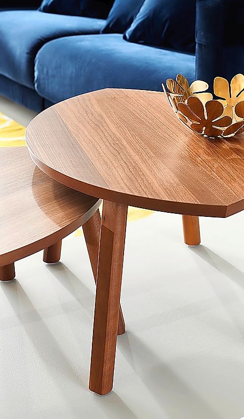 Und es überrascht auch nicht, dass unter der beliebten Stockholm-Kollektion des schwedischen Möbelhauses Ikea gerade die Produkte mit dunklen Hölzern zu den Bestsellern gehören. So etwa das Sideboard mit Nussbaumfurnier oder die formschönen Satztische. Ebenso der Couchtisch mit einer ovalen Tischplatte.