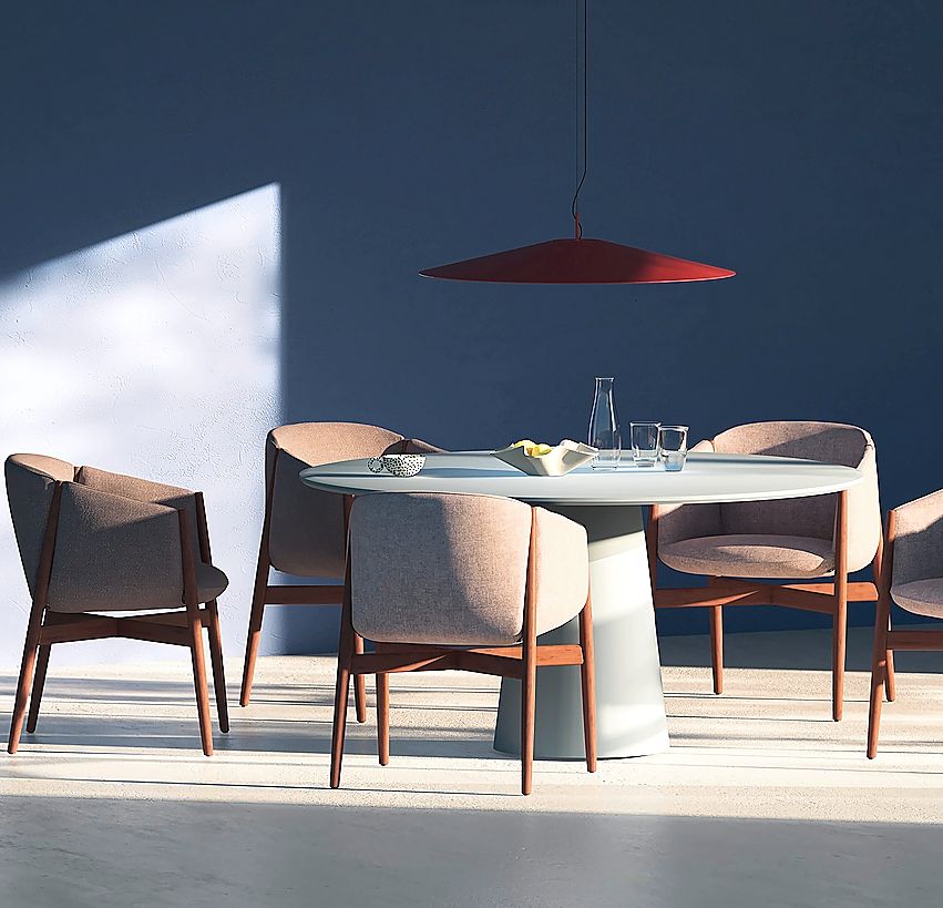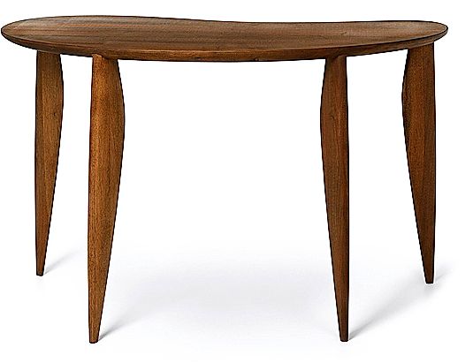 Ein klares Statement ist auch der Hocker von Naoto Fukasawa für Zanat aus Walnuss oder gebeiztem Ahorn. Er wird aus nur einem Stamm geschnitzt und kann als Beistelltisch oder sogar als Holzskulptur dienen, soll er doch mit seinen Rundbögen an die Brücke von Mostar in Bosnien-Herzegowina erinnern.