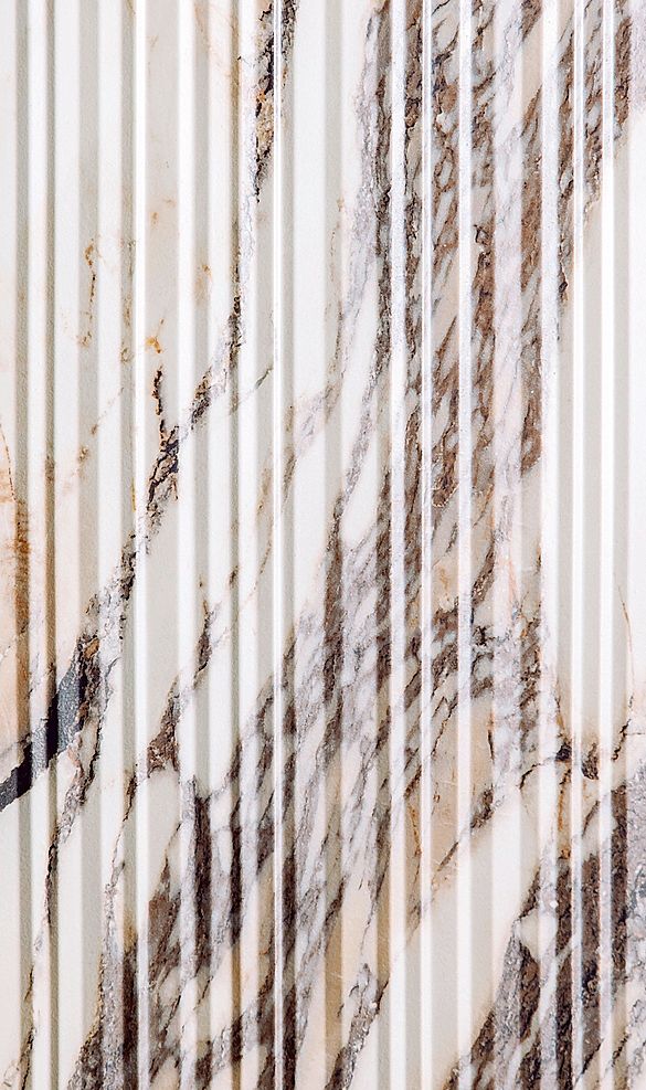 Ungewohnt ist dagegen noch die Anwendung von Marmor als Wandelement. Der Hersteller Sapienstone und der spanische Innenarchitekt Jaime Beriestain spannten für die exklusive Kollektion «Dresscode» (2) zusammen. Er wolle einen Massanzug für den Raum schaffen, sagt der Innenarchitekt. Dafür liess er sich von der eleganten Ästhetik Pariser Stadtpaläste inspirieren. An diese Pracht knüpfen unter anderem Oberflächen aus Marmor an, so beispielsweise aus Fior di Viola. Der Stein ist durchzogen von burgunderfarbenen Adern. Für seinen Einsatz als Wandverkleidung kam die 4D-Technologie zum Einsatz, welche die Gestaltung von Oberflächen mit Tiefe und Bewegung ermöglicht und ein Gefühl von Luxus und Einzigartigkeit vermittelt. «Jedes Stück ist nicht nur funktional, sondern fügt sich nahtlos in den Raum ein und bereichert ihn mit Raffinesse und Charakter», erklärt Beriestain.