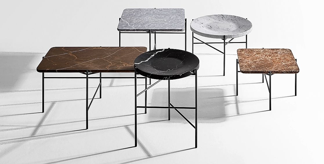 Das edle Material inspiriert auch weiterhin Designer und Hersteller, wie an den diesjährigen Designmessen wie dem Salone del Mobile in Mailand zu sehen war. Besonders bei der Gestaltung von Tischen hat sich Marmor durchgesetzt – und das aus gutem Grund. Der Stein vereint Ästhetik und Funktionalität auf besondere Weise: Seine kühle, glatte Oberfläche wirkt edel und modern, zugleich strahlt sie eine natürliche Ruhe aus. Kein Stück gleicht dem anderen – jede Marmorplatte wird durch ihre individuelle Maserung zum Unikat. In einer Zeit, in der Beständigkeit und Echtheit wieder an Bedeutung gewinnen, bietet der Stein genau das, wonach viele suchen: Substanz. Das schwedische Designstudio TAF Studio entwarf für Muuto mit «Midst» (1) einen grosszügigen Tisch in schlichter Silhouette. Auf einem monolithischen Fuss aus hochglänzendem Stahl liegt eine geschliffene Tischplatte aus grauem Marmor. Das Grau des Steins, die exquisite Maserung und die subtilen blauen Untertöne verleihen dem Entwurf eine raffinierte Note. Der Sockel ist in Grau, Schwarz oder Dunkelrot erhältlich.