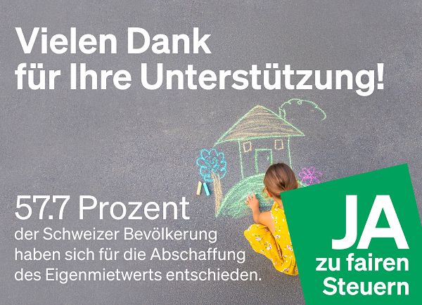 Der HEV fordert den Bundesrat auf, noch einmal über die Bücher zu gehen und den Eigenmietwert per 1. Januar 2028 abzuschaffen, wie dies im Vorfeld der Volksabstimmung den Stimmbürgern kommuniziert worden ist.