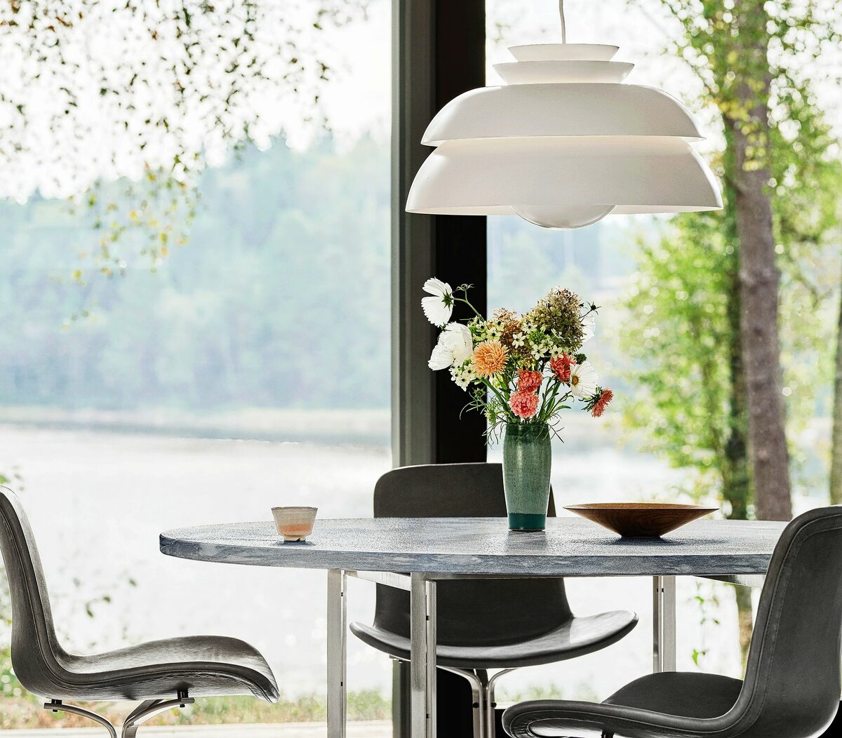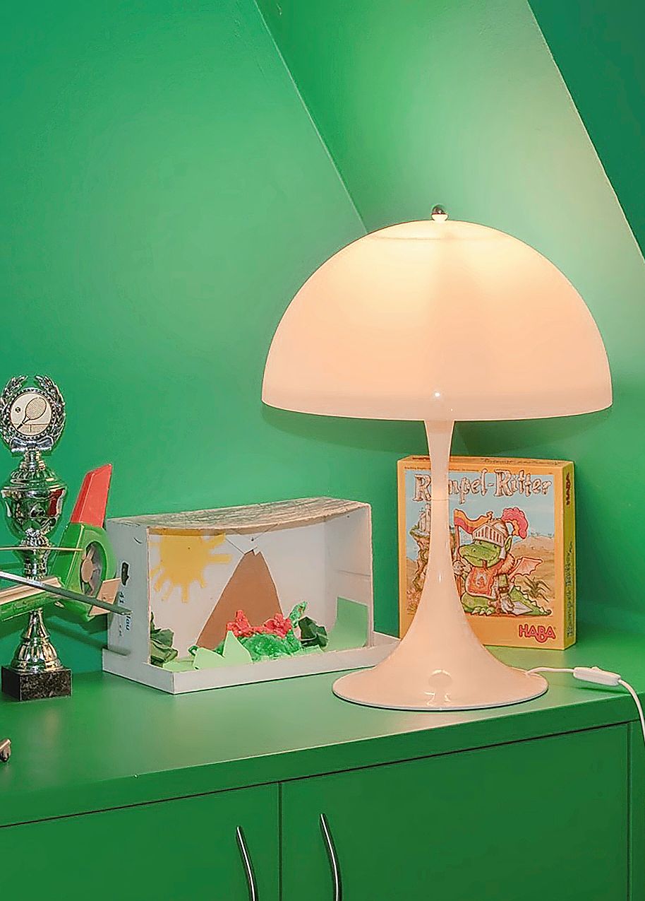 Es braucht dazu nicht gleich eine radikale Neugestaltung des Interieurs. Viel schöner ist es, wenn man die Trendfarbe dosiert einsetzt und nach besonderen Stücken sucht. Besonders geeignet sind Leuchten: die Stehleuchten Bianca von Fontana Arte (7) oder Concert von Fritz Hansen (6), ebenso Tischleuchten wie Panthella von Louis Poulsen (5), Arum von Ferm Living oder Jazz von Vibia (3). Sehr schön wirkt auch die Tischleute Earth der Marke Serax – handmodelliert aus Pappmaché und eine gelungene Verbindung von traditionellem Handwerk und zeitgenössischem Design.