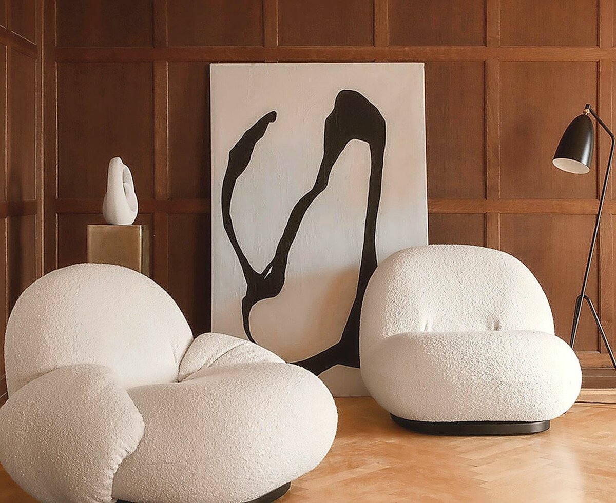 Weisse Akzente im Interieur lassen sich auch über Sitzmöbel setzen. Der Classic-Chair von Verner Panton für Vitra oder der Stuhl Moser von Horgenglarus bringen Leichtigkeit in den Raum und sind zudem auch noch pflegeleicht. Gleiches gilt für den Bibendum Armchair von Eileen Gray für Classicon (1) – ein Designklassiker mit skulpturaler Präsenz. Anspruchsvoller im Alltag sind Möbel mit Stoffbezügen wie das Sofa Rico von Ferm Living oder der Sessel Melvia von Kave Home. Wer sich tatsächlich wie ein Wolkentänzer oder eine -tänzerin fühlen möchte, findet im Pacha Lounge Chair von Gubi (4) genau das passende Stück. Seine weichen, geschwungenen Formen vermitteln beinahe das Gefühl, auf einer Wolke zu sitzen. Mag es draussen in der Welt noch so turbulent zugehen – im eigenen Zuhause darf es ruhig sein. «Cloud Dancer» liefert dazu keine spektakuläre, aber eine stille und überzeugende Grundlage.