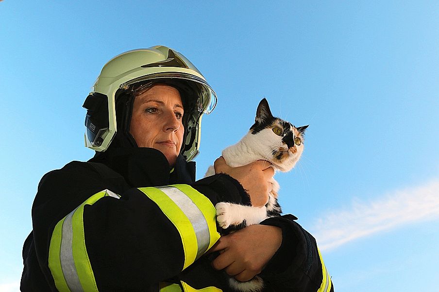 1. Feuerwehr: Die Feuerwehr kommt meistens mit einem Wagen, der über eine lange Leiter mit Drehkorb verfügt. Diese Leiter wird ausgefahren, damit die Feuerwehrperson das Tier fassen kann. Sie sollte immer einen Transportkorb, dicke Handschuhe und ein Netz dabei haben. Sollten diese Utensilien nicht vorhanden sein, kann oft eine Tierschutzorganisation diese ausleihen. Die Feuerwehr muss den Wagen neben den Baum fahren können, andernfalls ist ein Einsatz nicht möglich. Es empfiehlt sich, unter der Leiter ein Netz oder Tuch zu spannen (hierzu braucht es einige Helfer), damit die Katze, sollte sie erschreckt werden und fallen, sich nichts bricht.