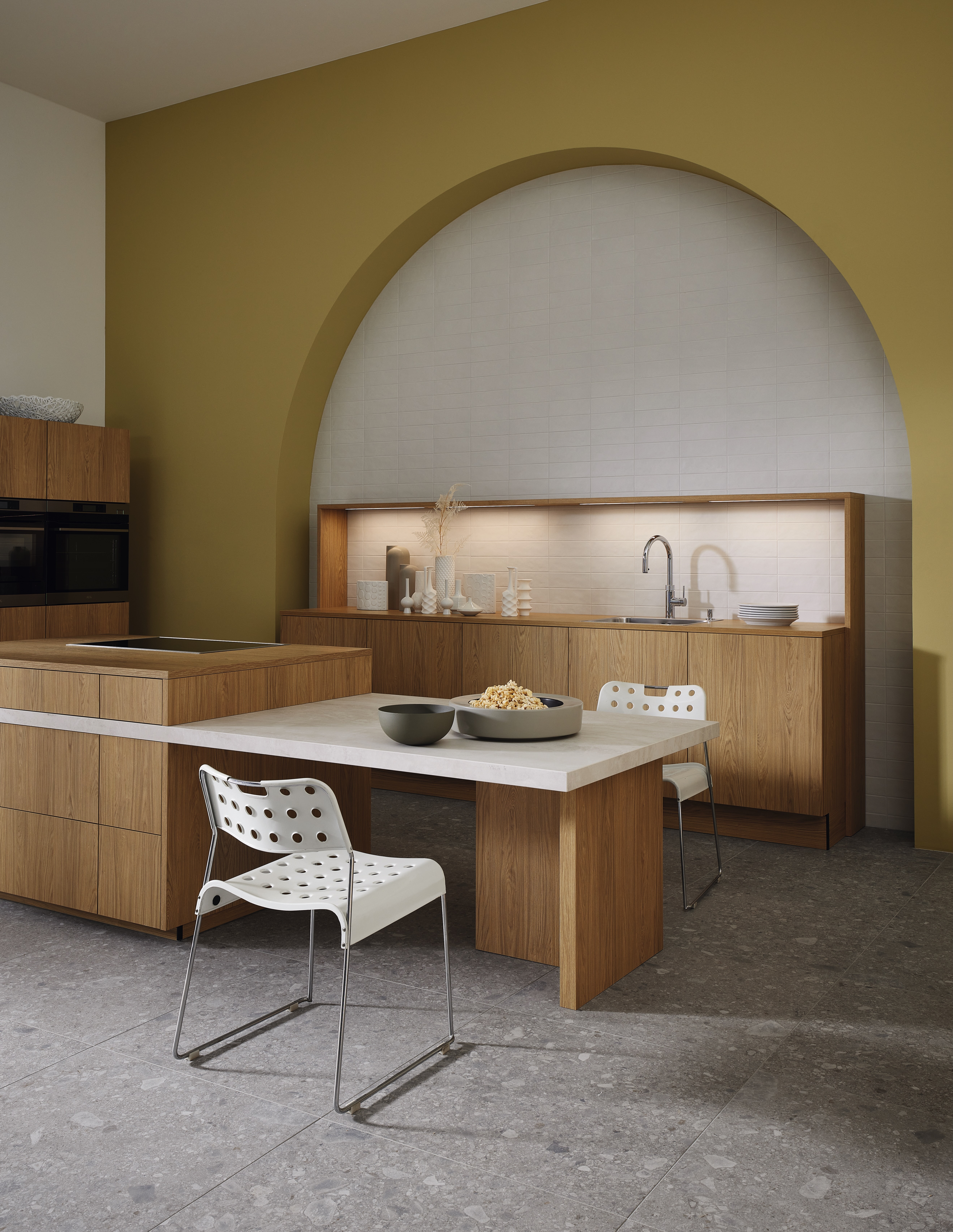 Auch griffloses Design ist möglich: Mit MatrixArt ONE und MatrixZERO bietet nolteneo elegante Lösungen. MatrixArt ONE kombiniert eine durchgehende Griffleiste unter der Arbeitsplatte mit Push-to-open-Technik, während MatrixZERO vollständig auf sichtbare Griffe verzichtet.